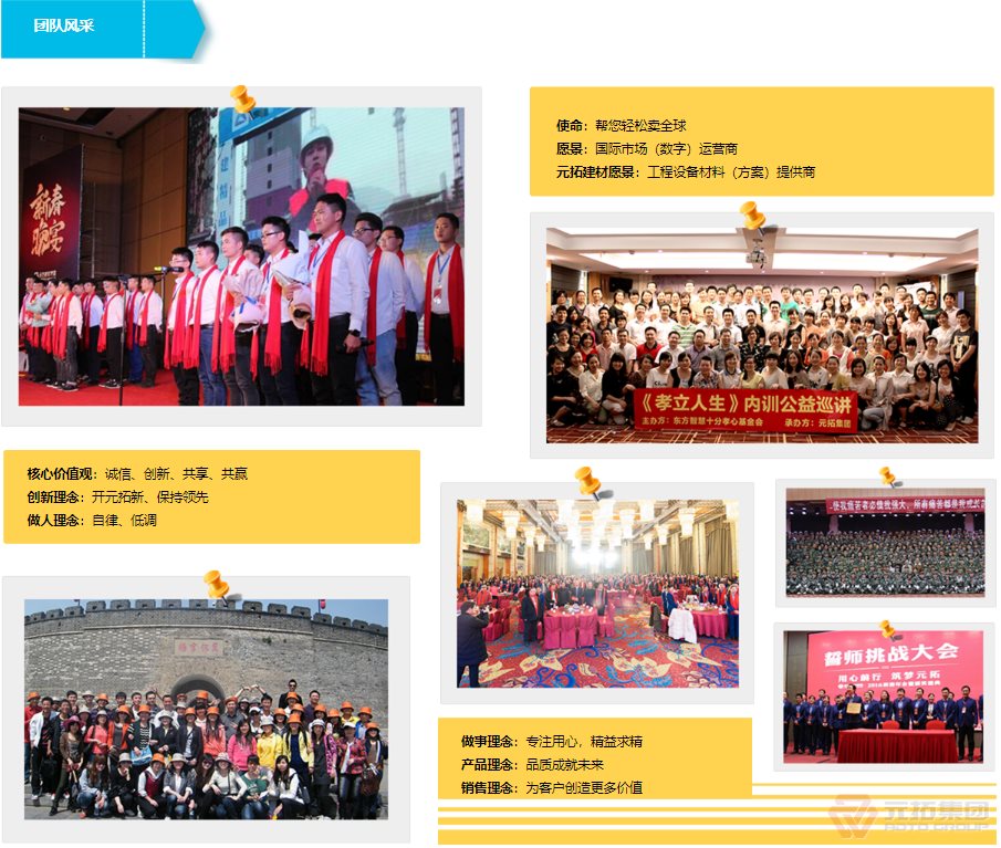 湖南元拓建材集團股份有限公司(簡稱:元拓建材集團)始創(chuàng)于1998年,以工程最前端的腳手架、鋁合金模板等產(chǎn)品為基礎,現(xiàn)已發(fā)展成為集房產(chǎn)、工程、材料全產(chǎn)業(yè)鏈服務及多元化發(fā)展的大型實業(yè)集團。元拓模架產(chǎn)業(yè)鏈板塊(簡稱元拓模架)隸屬于湖南元拓建材集團,提供模架產(chǎn)業(yè)鏈解決方案––全系模架產(chǎn)品(含國際)、模架租賃及托管、勞務施工、數(shù)字模架、營銷訂單解決方案、應收解決方案。 元拓模架深耕全球市場24年,目前擁有天津和順昌、湖北元拓鋁模兩大模架生產(chǎn)基地,長沙、青島、廣州三大子公司,埃及、印尼、迪拜、菲律賓等10多家海外子公司/辦事處。是中國石油、中國石化等世界知名石化施工企業(yè)指定供應商和世界各國優(yōu)秀工程施工企業(yè)長期戰(zhàn)略合作伙伴,銷售網(wǎng)絡遍布多個國家和地區(qū)。