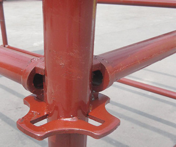 菊花盤扣式腳手架在上世紀(jì)八十年代從歐洲引進(jìn),它是用新穎、美觀的菊花扣盤連接橫桿,通過(guò)錘擊插片使橫桿接頭上的圓弧面與立桿的鋼管緊密連接,盤扣式腳手架具有可靠的力學(xué)強(qiáng)度和自鎖性能,