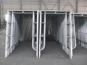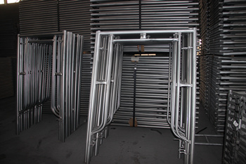 組合門式腳手架這種腳手架主要由主框、橫框、交叉斜撐、腳手板、可調(diào)底座等組成。門式腳手架由美國首先研制成功,它具有拆裝簡(jiǎn)單、承載性能好、使用安全可靠等特點(diǎn),發(fā)展速度很快。